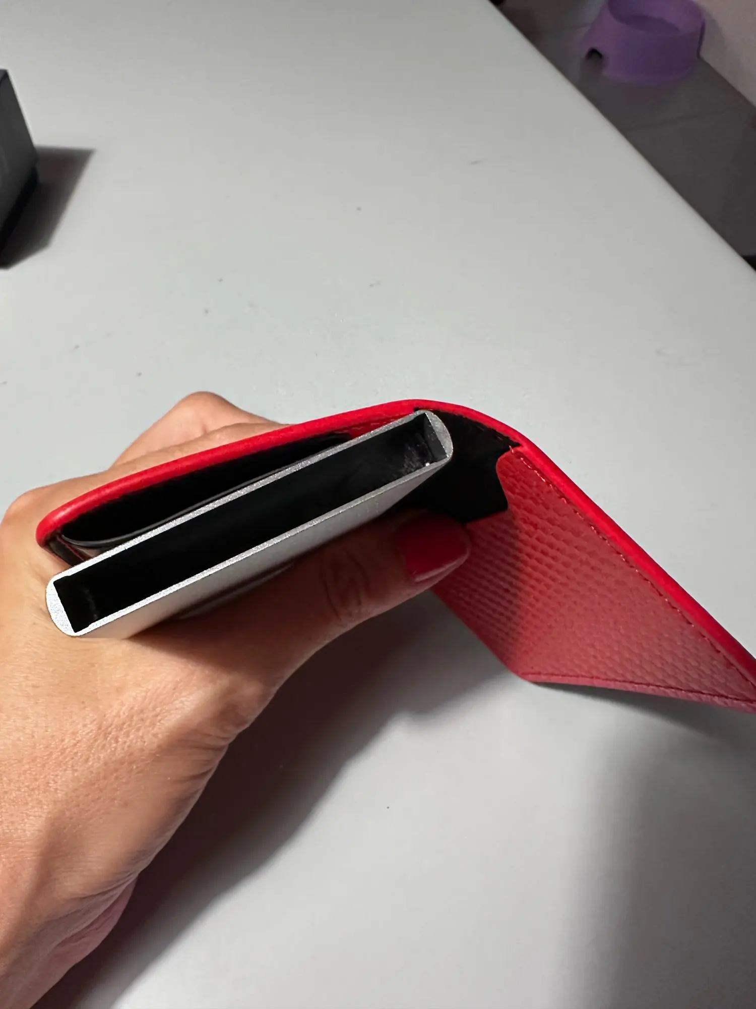 - Capacity: Holds up to 8 cards in pop-up slot + 2 ID slots + 1 photo slot